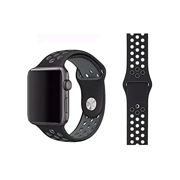 سوار مطاطي لساعات ابل اي ووتش مقاس 42 ملم سيليكون باصدار رياضي بثقوب من نايكي أسود للبالغين الجنسين,