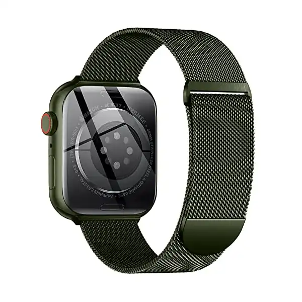 لماذا سوار مغناطيسي من الستانلس ستيل بتصميم شبكي ميلانو من زيدولي، لساعة ابل ووتش سيريز 7 و6 و5 و4 و3 و2 و1 وSE والترا مقاس 41 و45 و44 و42 ملم، أخضر، للنساء؟