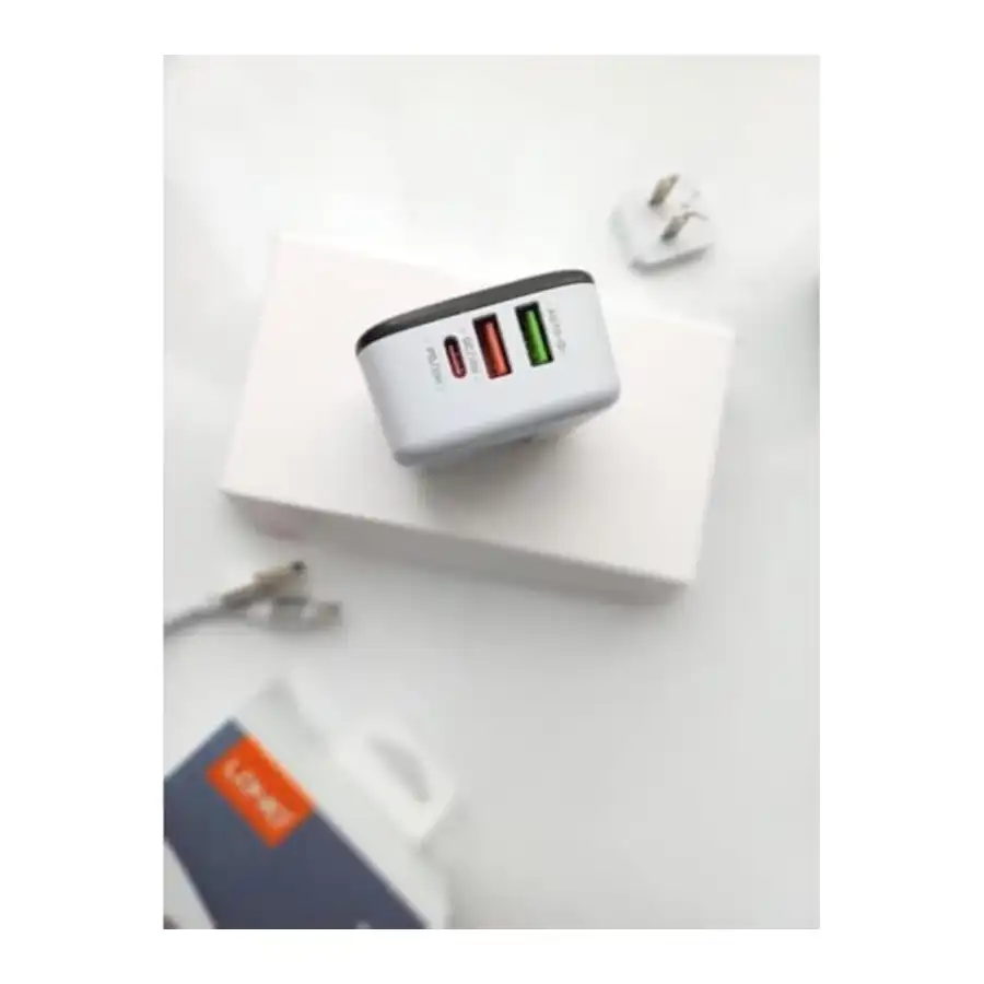 شاحن من لدنيو بتقنية USB وUSB-C وLightning، متوافق مع الهواتف الذكية والتابلت والأجهزة الأخرى، بثلاثة منافذ