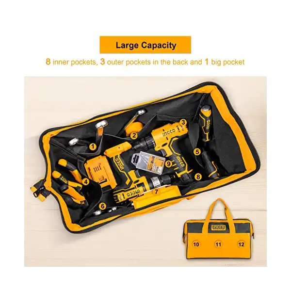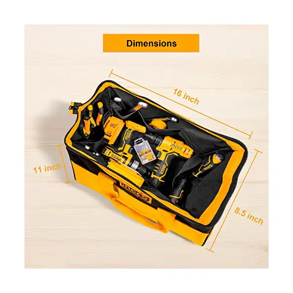 تفاصيل أكتر عن شنطة ادوات 16 بوصة HTBG28161 من انجكو، منظم مع فم واسع مضاد للماء ومتعدد الاستخدامات، شنطة يد كبيرة لحمل ادوات البناء والنجار والبستنة والكهربائية والمنزلية وادوات داى