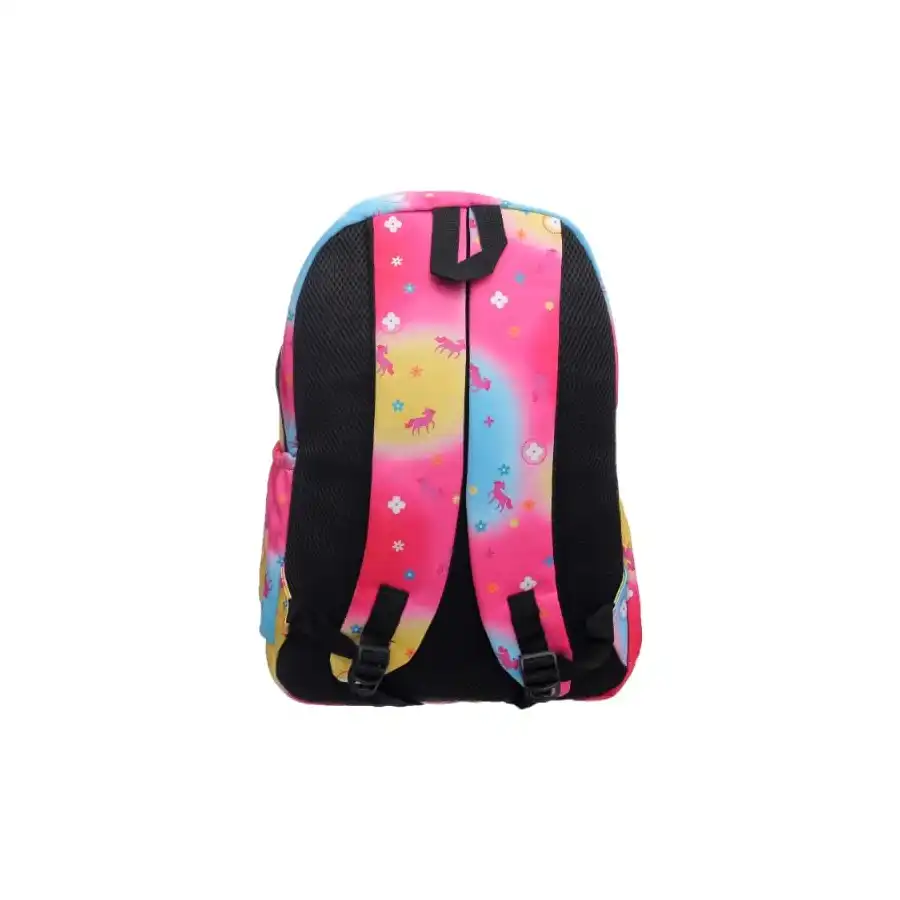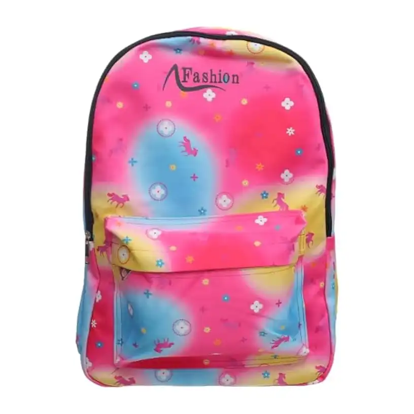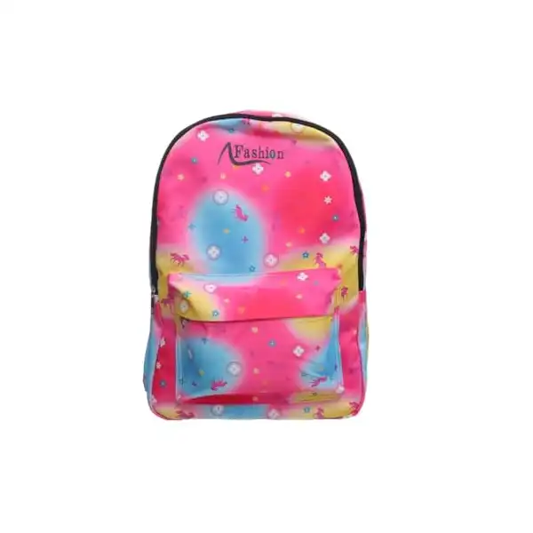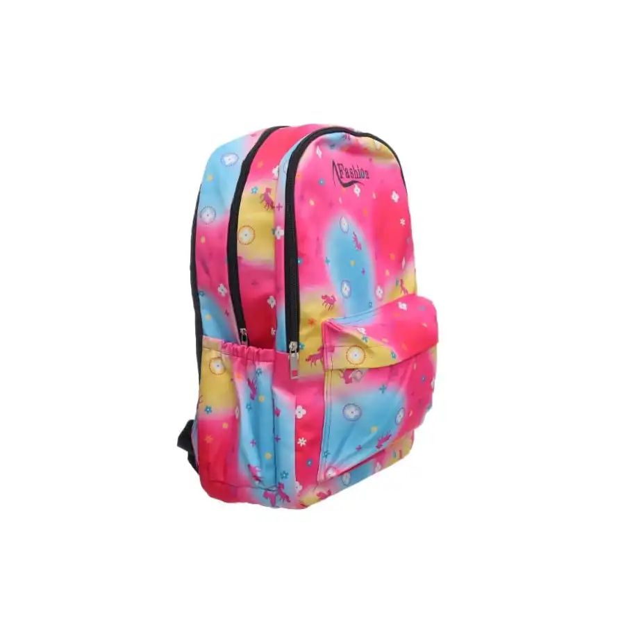 شنطة ظهر قماشية كبيرة بطبعة ملونة تحتوي على جيب امامي بسوستة وجيوب جانبية عميقة ومصممة خصيصا للطلاب – متعددة الالوان