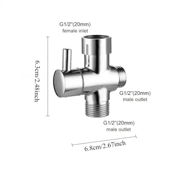 صمام تحويل ذراع الدش ثلاثي الاتجاهات G1/2 انش من بيرفتسيل، صمام دش نحاسي مقسم مع غسالة مطاطية لنظام دش الحمام، جزء بديل لرأس الدش المحمول باليد/راس رش ثابت كروم