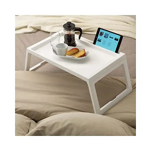 صينية سرير متعددة الأغراض بسعة حمل 5 كجم، ترابيزة بأرجل قابلة للطي وفتحة للتابلت وفتحة كابل للاب توب والتابلت والقراءة والكتابة وتناول الطعام، أبيض,