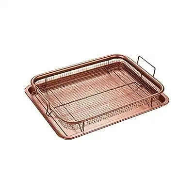 رائعة لحم الخنزير المقدد ورقائق البطاطس والدجاج المقلي! توقف عن إهدار المناشف الورقية. تسمح صينية التقطيع النحاسية بمرور الشحوم إلى الصينية السفلية وتترك لك طعامًا مقرمشًا مطبوخًا بشكل مثالي. الآن يمكنك خبز الأطعمة المفضلة لديك وقليها وتحميصها بنفس المجموعة!