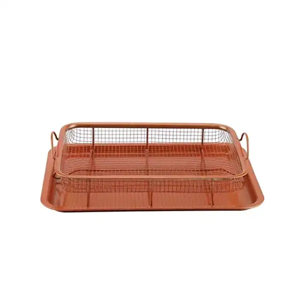 صينية كرسيبر من النحاس مقاومة للالتصاق للخبز في الفرن مع سلة قلي مرتفعة قطعتين