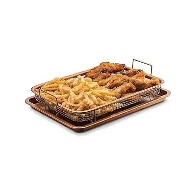 استخدم سلة المقرمشة والصينية معًا لتحميص الجوانب وقليها أو الوجبات بأكملها! أو استخدم الصينية النحاسية بمفردها كصينية خبز للبسكويت والبسكويت واللفائف وأكثر من ذلك. تساعد المقابض سهلة الإمساك على الحفاظ على سلامتك من الحروق العرضية وانسكاب الشحوم. فوضى أقل في مطبخك: تجمع الصينية غير اللاصقة جميع أنواع الفتات والرقائق والتقطير والرذاذ للحفاظ على الفرن خاليًا من البقع قدر الإمكان لتنظيف أقل بكثير.