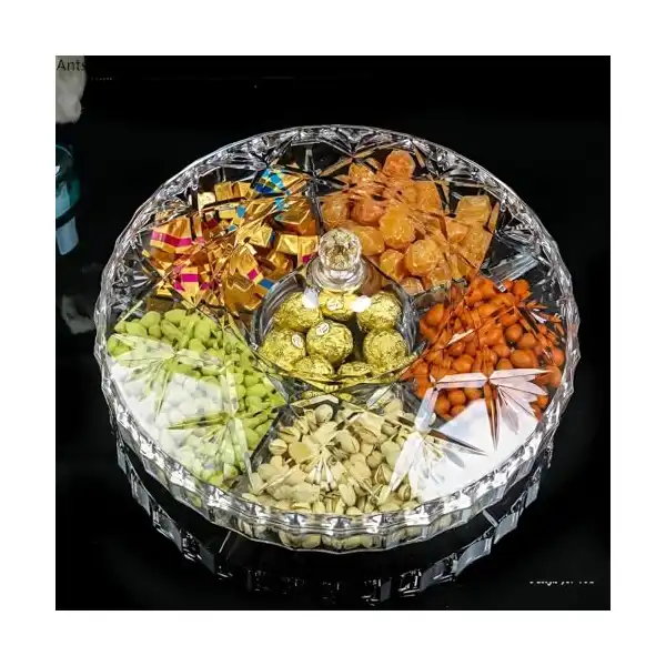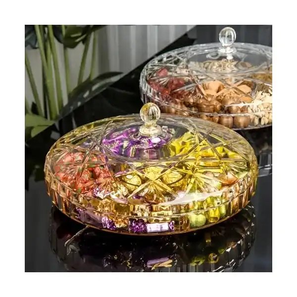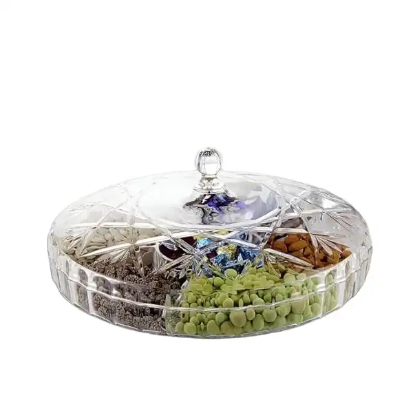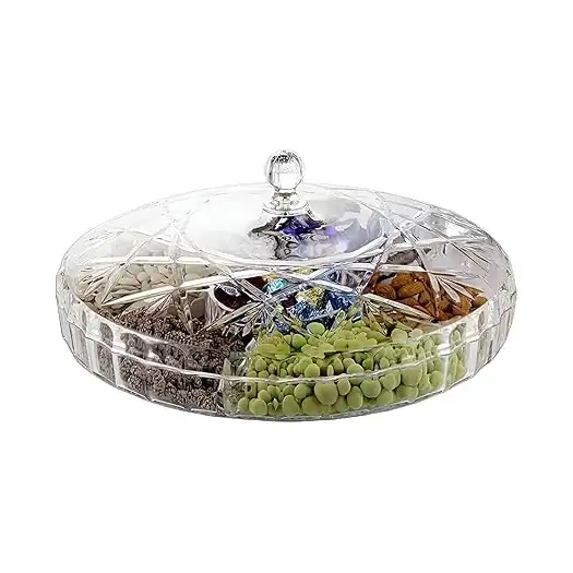 طبق كريستال للوجبات الخفيفة، صينية مقسمة أنيقة عالية الجودة مع غطاء، مثالية لأطعمة الترفيه كالمكسرات والحلويات والمعجنات، آمنة للاستخدام في غسالة الصحون، متوفرة بمقاسات متعددة (دائري)