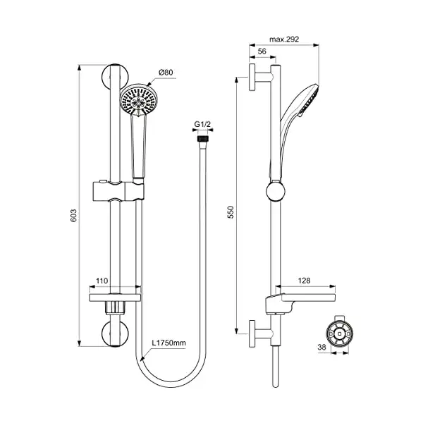 طقم دش اكوا من ايديال ستاندرد، M1-1 فن، بدون حامل صابون – فضي