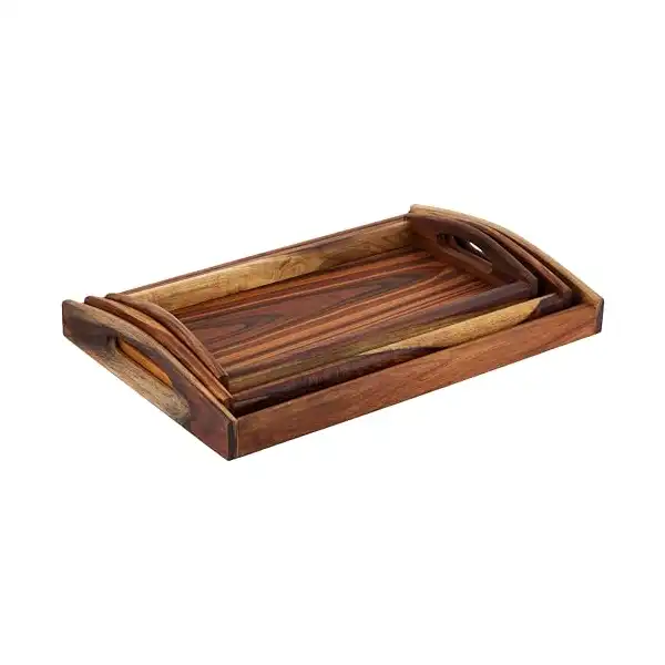 طقم صواني مستطيلة من خشب السرسوع من 3 قطع من الحياة، بني، من شركة الحياة للتوريد