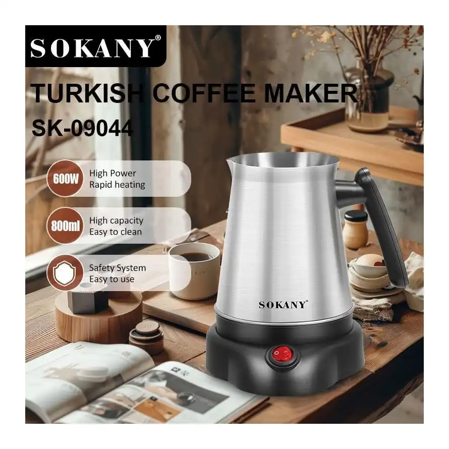غلاية قهوة موديل (SK-09044) من الفولاذ المقاوم للصدأ من سوكاني، سعة 800 مل 600W,