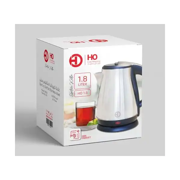 غلاية كهربائية بقوة 1500 وات، سعة 1.8 لتر، لون فضي وأسود، من هوهو,