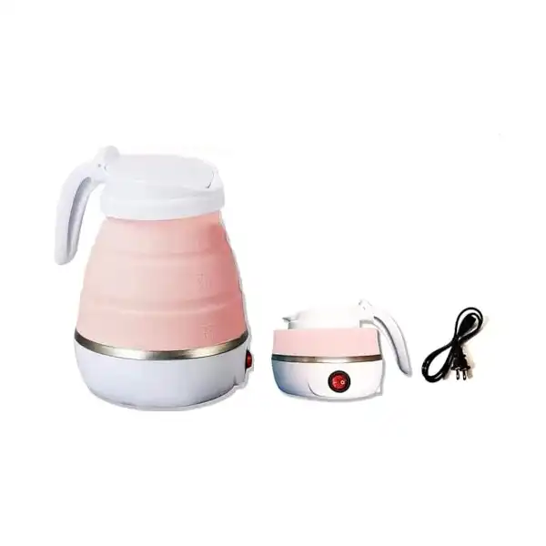 غلاية كهربائية من بلاك فاير باللون الوردي، مصنوعة من الفولاذ غير القابل للصدأ، قابلة للطي سهلة التخزين، سعة 600 مل