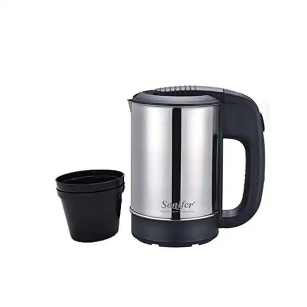 غلاية كهربائية من سونيفر بلون فضي، مصنوعة من الستانلس ستيل، مع هيكل من الفولاذ غير القابل للصدأ، سعة 0.5 لتر,