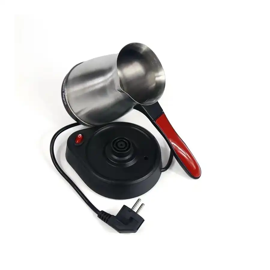 غلاية ماء ساخنة كهربائية من فيو بسعة 500 مل مصنوعة الستانلس ستيل ماكينة تحضير القهوة التركية اليونانية محمولة ومقاومة للماء شاي منزلية فضي