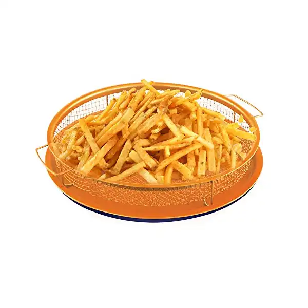 استمتع بالطعام المقرمش والمقرمش بدون زيت: استمتع بأجنحة الدجاج المقرمشة المفضلة لديك ورقائق البطاطس وعصي الموزاريلا الشهية بدون أي سعرات حرارية. الآن مع الصينية النحاسية الخاصة بنا، يمكنك قلي أي شيء يتبادر إلى الذهن في الفرن بدون أو القليل من الزيت. انس القلي العميق والأطعمة الدهنية من الآن فصاعدًا.