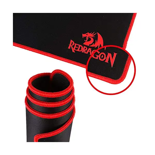 لماذا قاعدة ماوس ألعاب P003 مقاومة للماء ومضادة للانزلاق مع حواف مخيطة ونسيج ناعم حريري من ريدراجون، أسود وأحمر؟