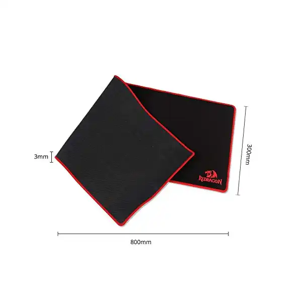 قاعدة ماوس ألعاب P003 مقاومة للماء ومضادة للانزلاق مع حواف مخيطة ونسيج ناعم حريري من ريدراجون، أسود وأحمر,