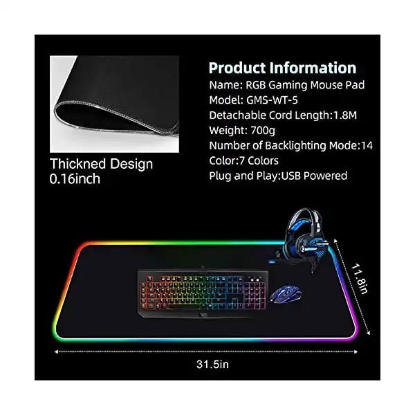 مقاس كبير L: حجم قاعدة الماوس 31.5 × 11.8 × 0.16 بوصة تقريبًا. ستناسب قاعدة ماوس الألعاب بإضاءة RGB سطح المكتب بشكل مثالي وتوفر مساحة حركة مثالية. سنقدم لك 4 مشابك للكابلات لتنظيم الكابلات، ويمكن أن توفر مساحة أكبر وتجعل مكتبك أكثر نظافة.
