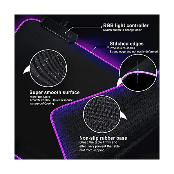 التوصيل والتشغيل : تعمل قاعدة الماوس الممتدة بمنفذ USB، قم بالتوصيل والتشغيل، فهي لا تحتاج إلى برنامج تشغيل. تم تصميم زر التحكم في قاعدة الماوس لمدة 10 ملايين مرة وهو متين للغاية. فقط اضغط عليه لاختيار وضع الإضاءة الذي تريده. اضغط مع الاستمرار لمدة 3 ثوانٍ لتشغيل/إيقاف التشغيل. كما أن خاصية ذاكرة إيقاف التشغيل تقوم بتذكيرك باختيار آخر وضع.