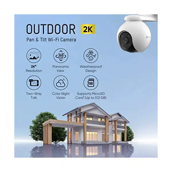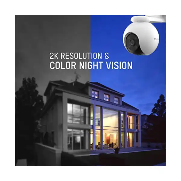 كاميرا ايزفيز اتش 8 برو بخاصية الدوران والإمالة بتقنية واي فاي من هيكفيجن|دقة 2K | تغطية 360 درجة|رؤية ليلية ملونة|تحدث ثنائي الاتجاه|تصميم مقاوم للطقس | تدعم بطاقة MicroSD (حتى 512 جيجابايت) | أبيض,