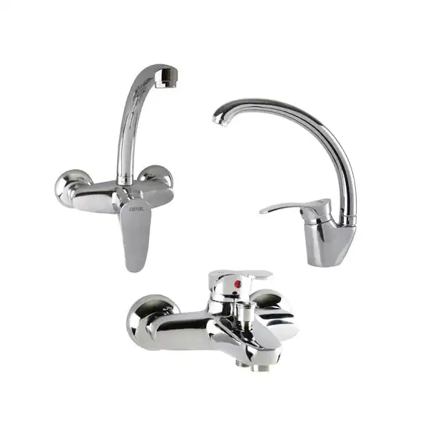 يتضمن خلاط حوض استحمام وخلاط حوض مرتفع وخلاط مطبخ مثبت على الحائط