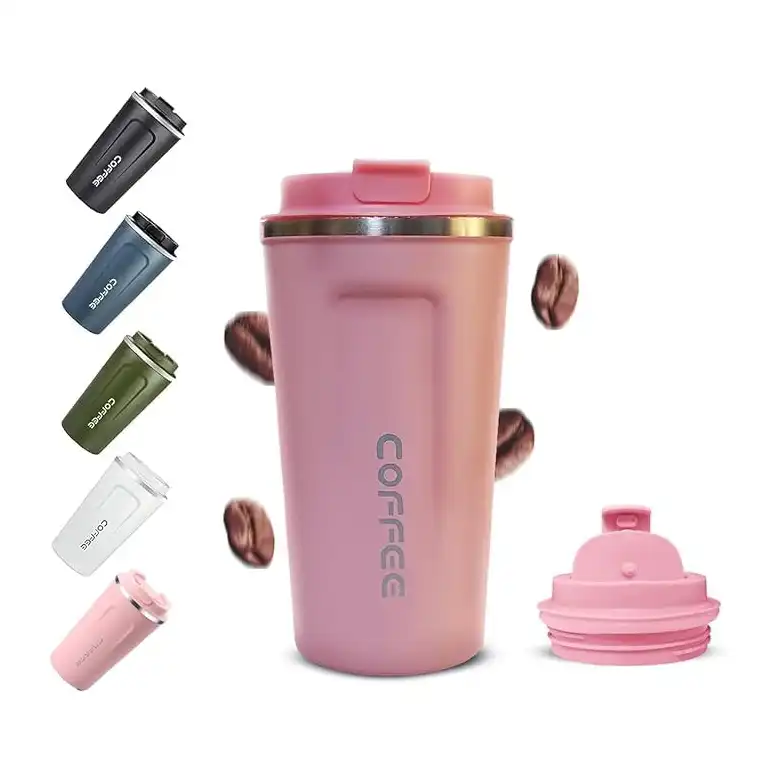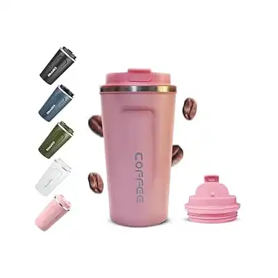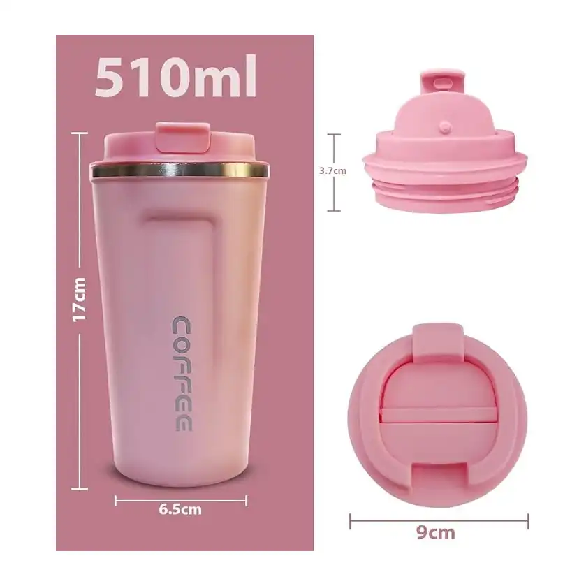 كوب قهوة، مج حراري معزول من فولاذ مقاوم للصدأ MK-128، يحافظ على المشروبات الساخنة والباردة، مج للقهوة حراري بجدار مزدوج خالي من مادة بيسفينول أ ومقاوم للانزلاق ومقاوم للتسريب، (510 مل)، (وردي)