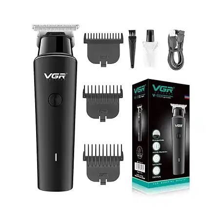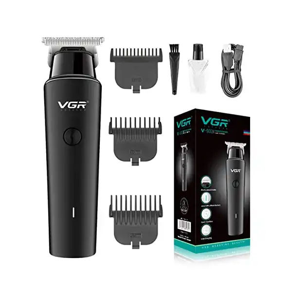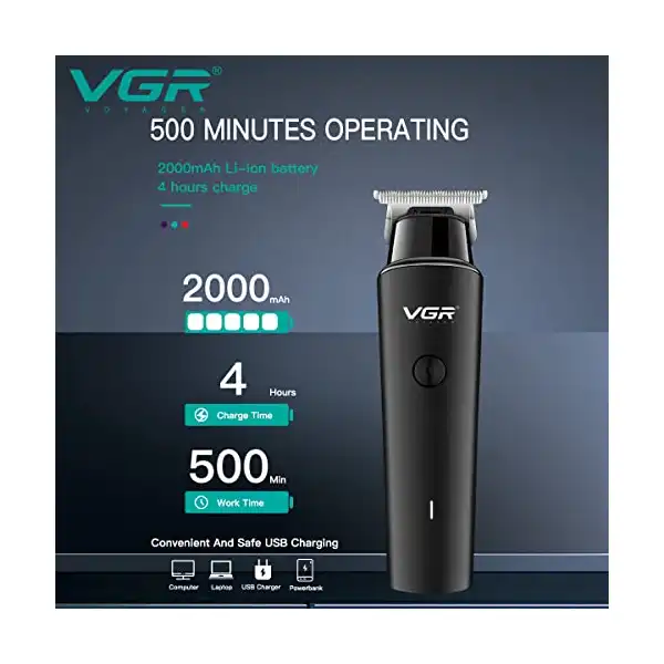 ماكينة تشذيب الشعر الاحترافية اللاسلكية القابلة لاعادة الشحن V-933 من في جي ار ببطارية ليثيوم 2000 مللي امبير وكابل شحن USB وشفرة دقيقة وزر تشغيل – ايقاف و3 امشاط توجيهية للرجال وقت التشغيل: 500,