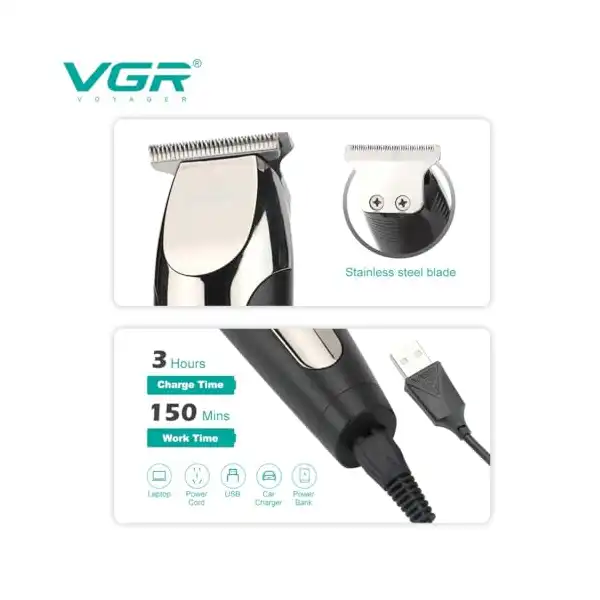 ماكينة حلاقة الشعر الاحترافية من في جي ار موديل V-059 وقت التشغيل: 150 دقيقة للرجال اسود – V059