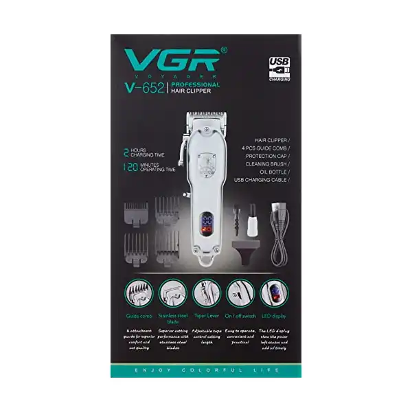 ماكينة حلاقة كهربائية احترافية ثلاثية الشفرات بشاشة ال اي دي وشحن USB من في جي ار، ماكينة سريعة لتشذيب الشعر مقاومة للماء بتصنيف IPX5، موديل V-370/V-371