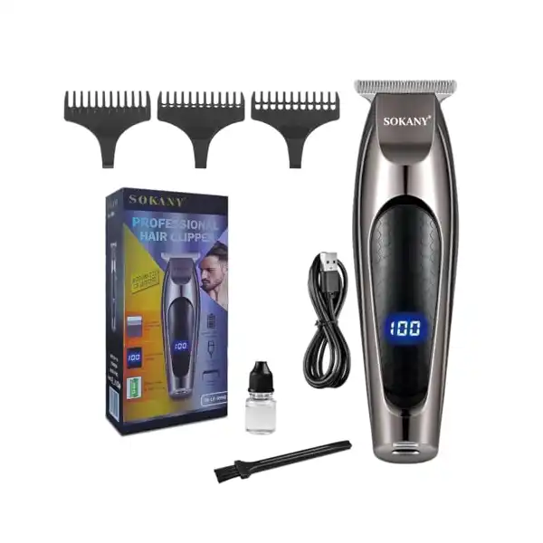 ماكينة حلاقة وقص شعر احترافية بشفرة من الفولاذ المقاوم للصدأ وشاشة LCD، 120 دقيقة لاسلكية وقبضة مقاومة للانزلاق من سوكاني، SK-LF-9990,