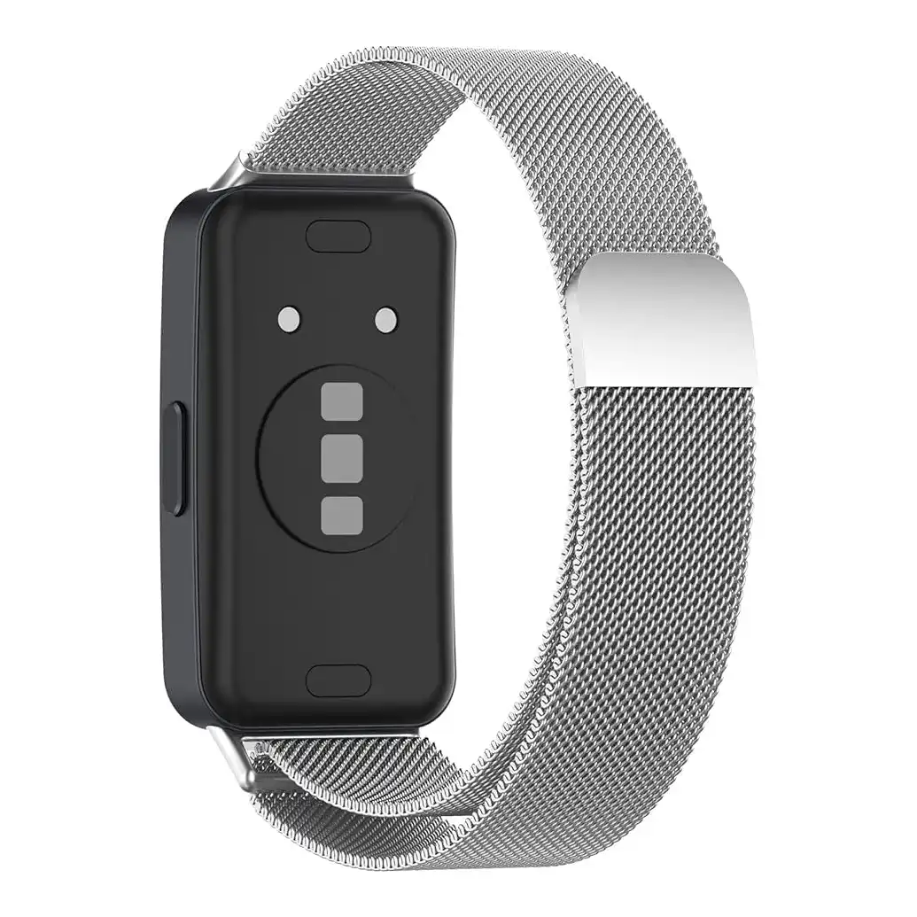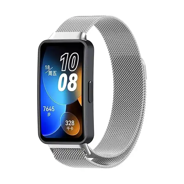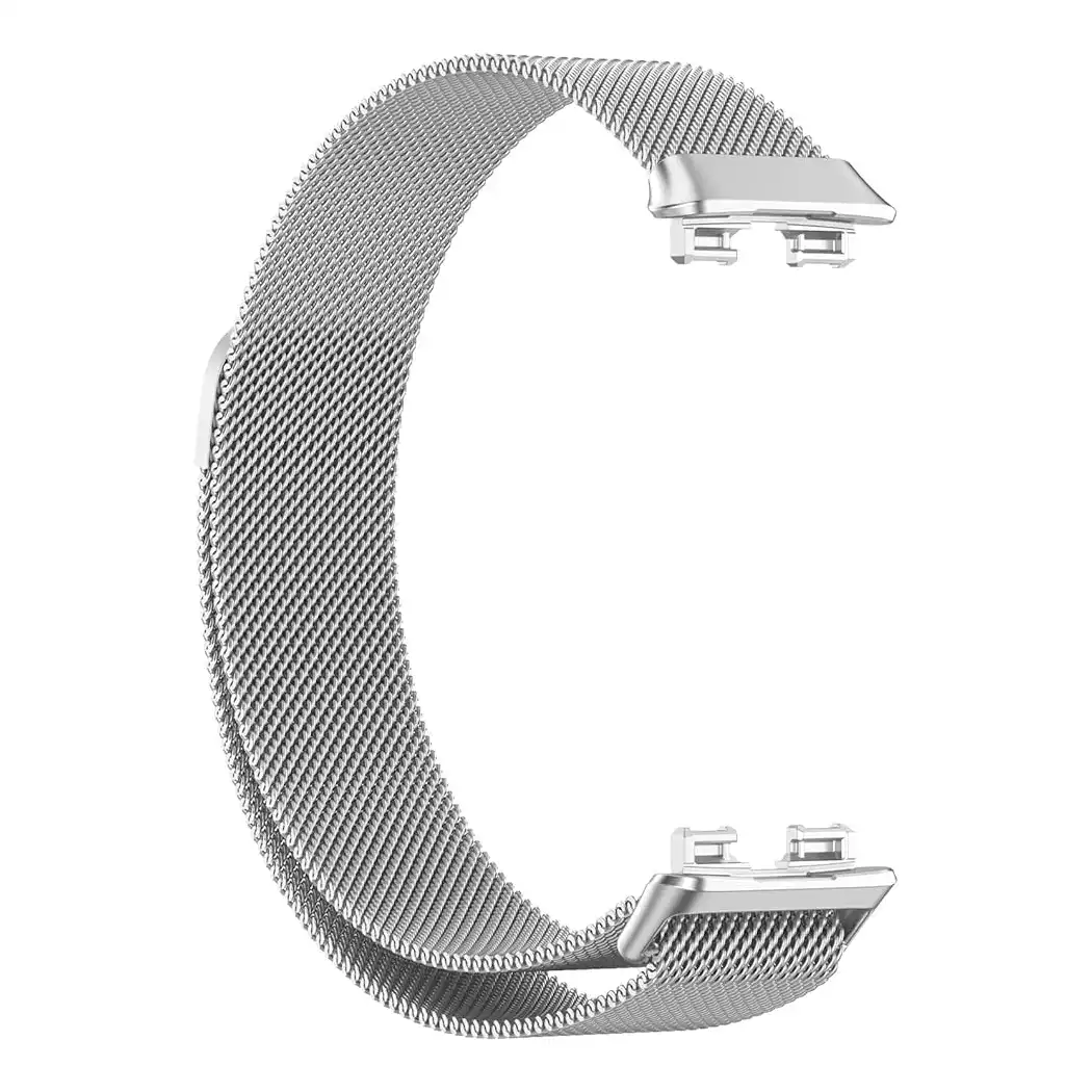 متوافق مع سوار هواوي باند 8، سوار ساعة بديل معدني ميلانو من الستانلس ستيل مع إغلاق مغناطيسي للنساء والرجال (بلون فضي)
