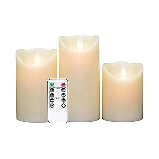 مجموعة شموع LED كهربائية بدون لهب تعمل بالبطارية مع جهاز تحكم عن بعد ومؤقت لعطلة الكريسماس (عبوة من 3 قطع)، متعدد الالوان,