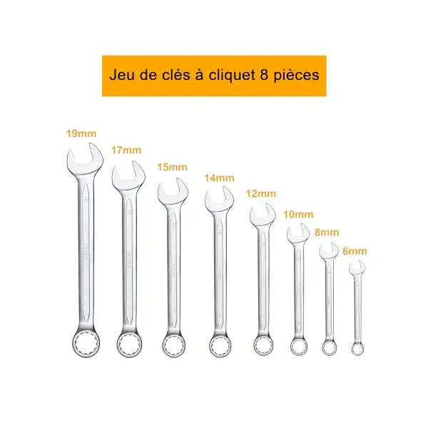 مجموعة مفتاح عدة مختلطة مقاس 6-19 ملم HKSPA1088 مكونة من 8 قطع من انجكو,