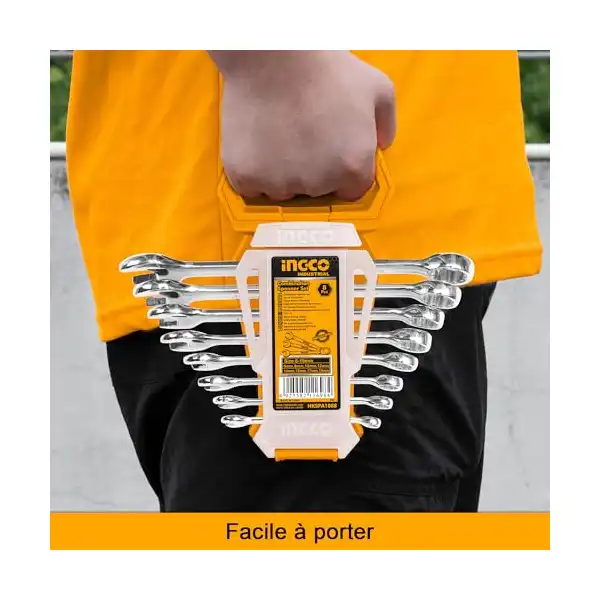 مجموعة مفتاح عدة مختلطة مقاس 6-19 ملم HKSPA1088 مكونة من 8 قطع من انجكو