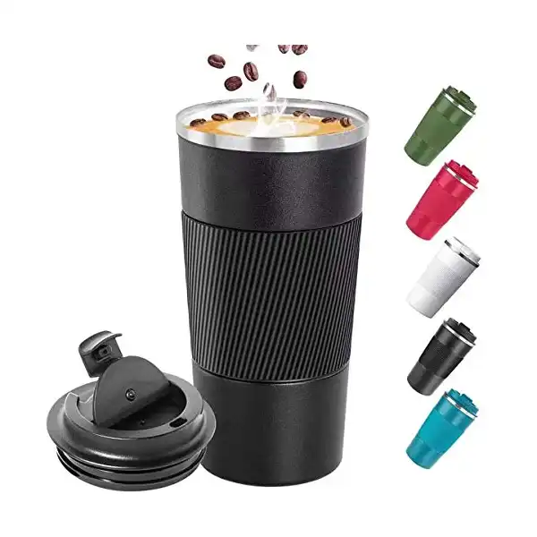 مج قهوة للسفر تامبلر بسعة 17 اونصة بجدار عازل مزودج من ستانلس ستيل وغطاء قلاب مانع للتسرب للحفاظ على القهوة والشاي الساخن- المثلج 510 مل اسود بيج سيلر,