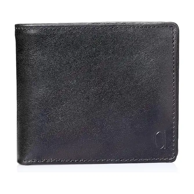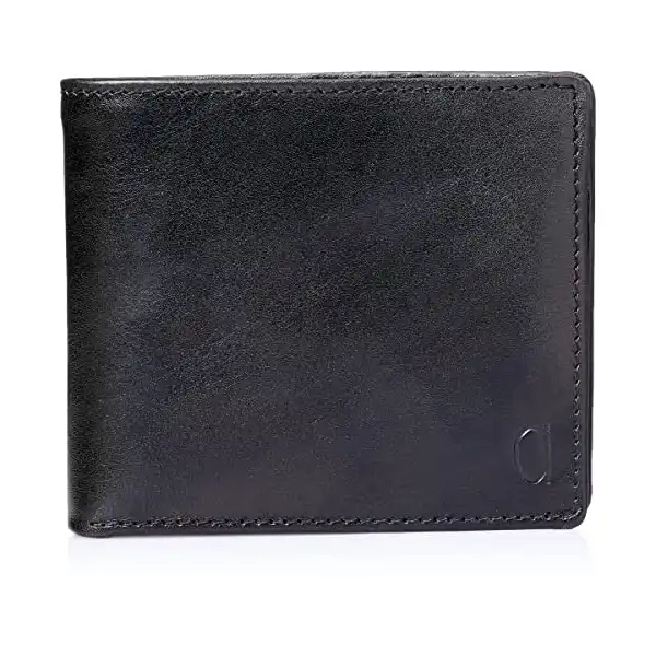 محفظة ثنائية الطي بشعار محفور للرجال من الفا ليذر كو – اسود,