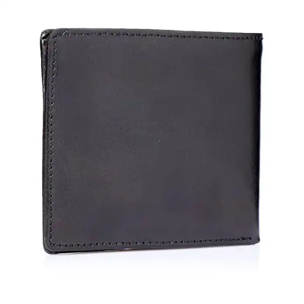 تفاصيل أكتر عن محفظة ثنائية الطي بشعار محفور للرجال من الفا ليذر كو – اسود