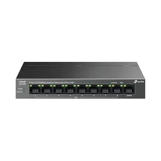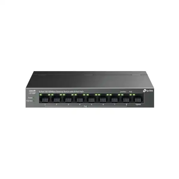 محول ايثرنت لسطح المكتب LS109P ب 9 منافذ 10/100 ميجابايت في الثانية مع 8 منافذ PoE بلس من تي بي-لينك