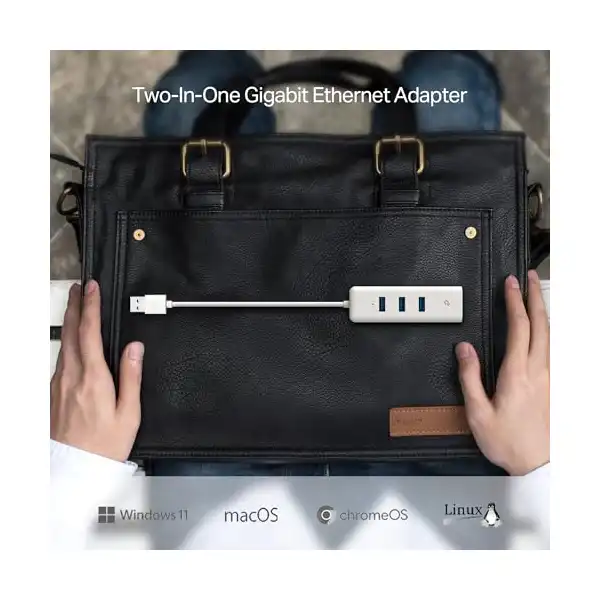 محول USB 3.0 إلى ايثرنت موزع محمول بـ 3 منافذ مع شبكة منفذ ار جيه 45 جيجابت يدعم ويندوز 7-8-8.1-10 ماك او اس اكس 10.6-10.14 نظام تشغيل لينكس ونظام كروم من تي بي لينك موديل,