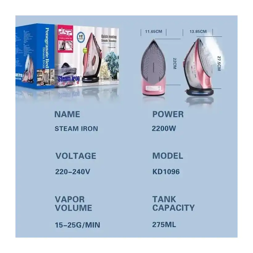 تفاصيل أكتر عن مكواة بخار دي اس بي، مكواة بخار محمولة، مكواة بخار 2200 واط مع قاعدة مطلية بالسيراميك، خزان مياه 275 مل، انفجار بخار قوي، تنظيف ذاتي، KD1096