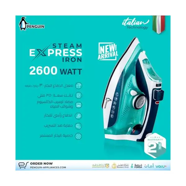 لماذا مكواة بخار مع سطح سيراميك من بينجوين، قدرة 2600 وات، سعة خزان 350 مل، لون أخصر؟