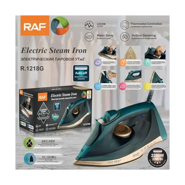 مكواة بخار 2200 وات من راف، 220 فولت، 50 هرتز، أخضر R.1218G,
