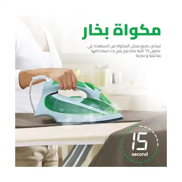 تسخين سريع: استمتع براحة لا مثيل لها مع ميزة العادم السريع لمدة 15 ثانية، مما يسمح لك بالبدء في الكي في وقت قصير.