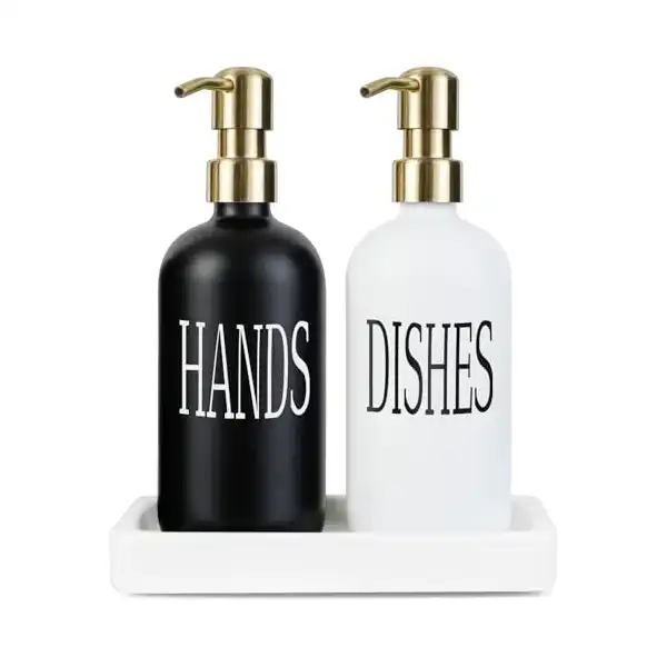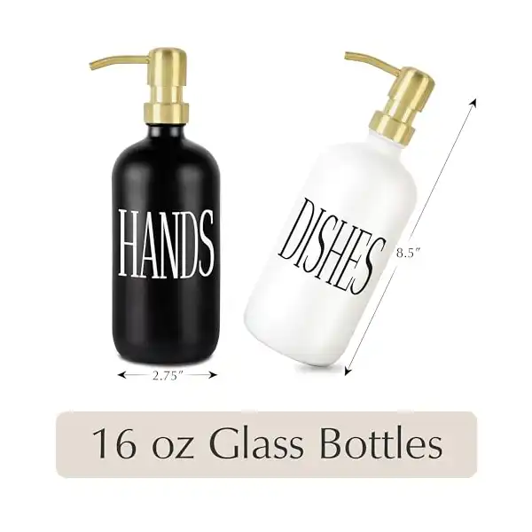 ✅ مجموعة كاملة: قم بترقية مظهر مطبخك وحمامك مع موزعات الصابون الزجاجية الحديثة التي تمزج بسلاسة بين العملية والأناقة. مزيج ينضح بالأناقة، بينما تضيف صينية البورسلين لمسة من الرقي الكلاسيكي. تحتوي المجموعة على زجاجتين زجاج مقاومتين للكسر ومضختين من الفولاذ المقاوم للصدأ المقاوم للتآكل وصينية بورسلين شديدة التحمل.
